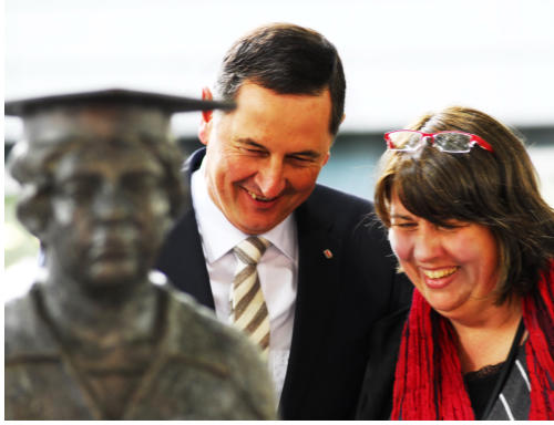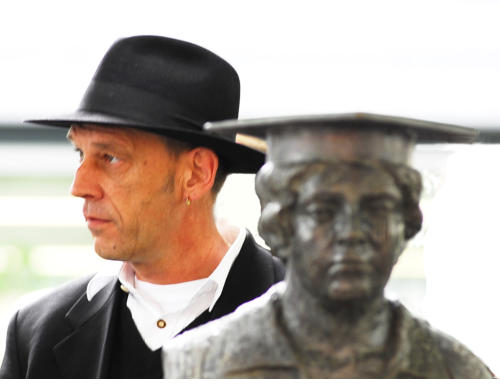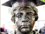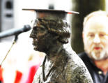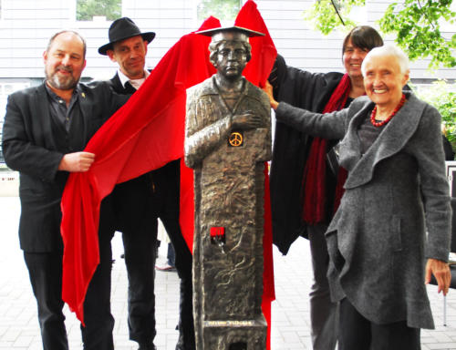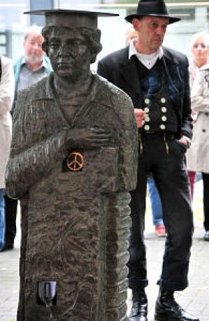 Sie wollte unbedingt noch ein Denkmal für Helene Stöcker schaffen. Ganz wichtig war der 2012 verstorbenen Wuppertaler Bildhauerin Ulle Hees der Doktorhut für die erste deutsche promovierte Philosophin. Die 1869 in Elberfeld geborene Frauenrechtlerin, Sexualreformerin und Friedensaktivistin wuchs auf als Tochter eines kleinen Textilfabrikanten und Presbyters an der Alten reformierten Kirche, der heutigen City- Kirche. Dank des Initiativkreises um die Armin-T.-Wegner-Gesellschaft und das Projekt „Geschichte Gestalten“ sowie zahlreicher Spenden wurde das von Ulle Hees und ihrem Künstlerfreund Frank Breidenbruch begonnene Werk in nur neun Monaten vollendet. Bei der Einweihung vor der VHS beglückwünschten Oberbürgermeister Peter Jung und die pädagogische Leiterin der VHS Monika Biskoping die Initiative zu der gelungenen Aktion.