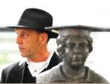 Stöckers Vater war Presbyter an der heutigen Citykirche 1869 in Elberfeld geboren, 1943 im New Yorker Exil gestorben, war Helene Stöcker eine unerhörte Frau. Aufgewachsen in einem streng reformierten Elternhaus – der Vater, ein Textilhändler, war Presbyter an der heutigen Citykirche. In Berlin absolvierte sie eine Lehrerinnen- Ausbildung und begann, sich für Frauenrechte und Sozialreformen einzusetzen. Sie war erfolgreich, konnte die Lebensbedingungen für ledige Mütter und ihre Kinder verbessern, war nicht nur in der Friedensarbeit international vernetzt, erläuterte am Freitag Ulli Klan, der Vorsitzende der Armin-T.-Wegner-Gesellschaft. Eine Alice Schwarzer der 20er Jahre, wie manche meinten, sei sie aber keineswegs gewesen. „Sie hat nie Männer und Frauen gegeneinander gestellt, sondern Männer an all ihren Projekten beteiligt“, so Klan. Ihre These war, Männer und Frauen seien sich wechselseitig überlegen. Lange wusste die Stadt mit ihr nichts anzufangen. Zwar gibt es das Helene-Stöcker-Ufer am Haspel – ehrenwert, aber auch ein wenig versteckt. Oberbürgermeister Peter Jung und die Stadt hatten mit der Stele auch jetzt nur insoweit zu tun, als sie dem Standort vor der VHS zustimmten – was Jung in seiner gestrigen Ansprache unumwunden zugab: „Das ist nichts, was auf städtischem Mist gewachsen ist.“ Den Entwurf von Ulle Hees hat ihr Freund und Kollege Frank Breidenbruch weiter bearbeitet – etwa dem im Entwurf weich- verschwommenen Gesicht die konkreten Züge von Helene Stöcker verliehen. Auf dem Rücken hat er unten einen kleinen Gruß „Für Ulle“ eingearbeitet, hinter einer Klappe eine Zeichnung versteckt – „als kleines Geheimnis“.